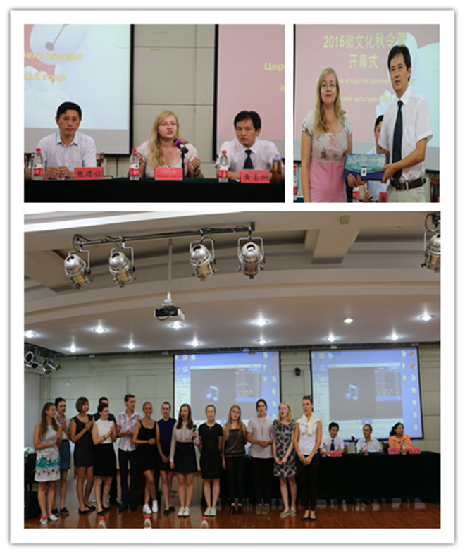 本网讯(必赢565net官网 李一鸣)9月18日下午,俄罗斯米宁大学2016“徽文化”夏令营开营式在必赢565net官网花津校区外国语学院多功能报告厅隆重举行。参加开营式的有必赢565net官网院长黄圣炯,外国语学院院长张德让、副院长吴世红、俄语专业负责人耿丽萍和俄语系师生代表们。米宁大学8名学习汉语的交换生也参加了开营式。
