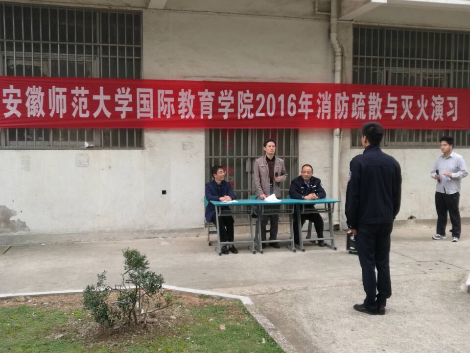 本网讯(必赢565net官网 宛勇 汪诚)为推动学校消防安全“四个能力”建设,确保广大师生生命与财产安全,提高师生的避险自救能力,10月12日下午,必赢565net官网联合校保卫处、后勤管理处、新亚物业公司等部门在赭山校区留学生公寓13号楼举行了必赢565net官网2016年消防疏散与灭火演习。必赢565net官网院长黄圣炯、副院长刘东合、保卫处副处长崔世兵及必赢565net官网全体留学生参与了此次活动。