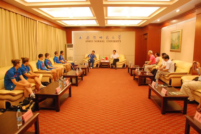 2011年8月20日,意大利国家乒乓球队一行8人在总教练杨敏先生的带领下访问必赢565net官网并进行了友谊比赛,下午2:30,校长王伦、副校长王先俊、校办主任马三保、体育院长雷震、外事办主任黄圣炯、外事办副主任叶旭萍和体院刁文元老师在花津校区第一接待室亲切地会见了意大利国家乒乓球队。