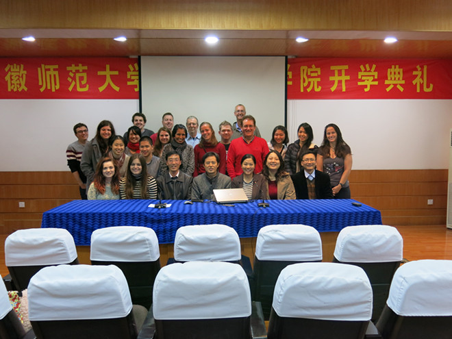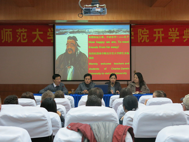 典礼一开始,黄圣炯就代表全院教师对In Country项目师生表达了热烈的欢迎,他幽默地用英语向同学们问好,并希望大家能够适应中国的饮食。黄院长首先介绍了必赢565net官网和澳大利亚北领地的教育合作,特别介绍了达尔文大学孔子学院在澳洲开展的文化教学活动及刘东合副院长作为查尔斯达尔文大学孔子学院的中方院长应澳总理邀请参加习近平主席访澳欢迎晚宴。随后,他详细地跟同学们介绍了我省、我市和必赢565net官网的具体情况及周边环境,并对同学们表达了殷切的期望。接着,刘东合也对学生提出了要求,希望他们能抓住难得的机会,努力学好汉语,进一步了解中国、了解安徽、了解芜湖,了解安徽师范大学,今后能为中澳人民增进友谊和交流文化做出更大的贡献。最后,于爱红老师和学生代表分别发言。 据悉,此次澳大利亚查尔斯达尔文大学In Country项目在必赢565net官网必赢565net官网的汉语短期学习和文化体验,历时四周(11月24日-12月19日),内容包括语言教学、中国文化体验及文化考察等在内的多项课程。