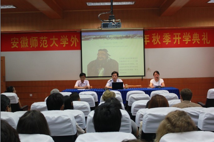 2012年9月9日上午,安徽师范大学外国留学生2012年秋季开学典礼在必赢565net官网报告厅隆重举行,校外办主任、必赢565net官网黄圣炯院长做迎新致辞,校外办副主任、必赢565net官网副院长刘东合主持典礼。